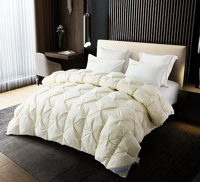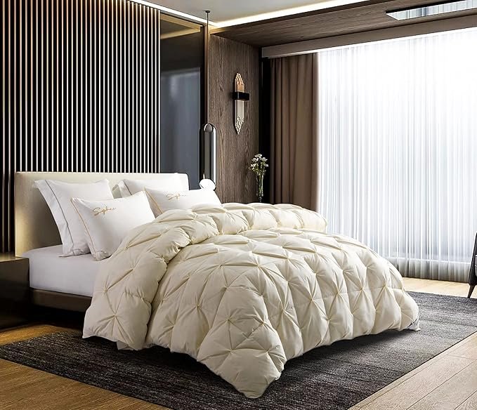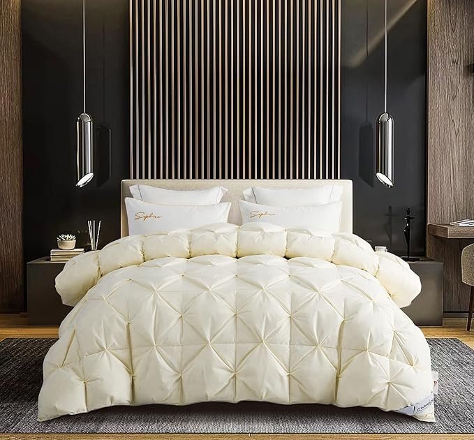 Goose Down Comforter Pinch Pleat Thick Duvet Insert with 100% Cotton Cover